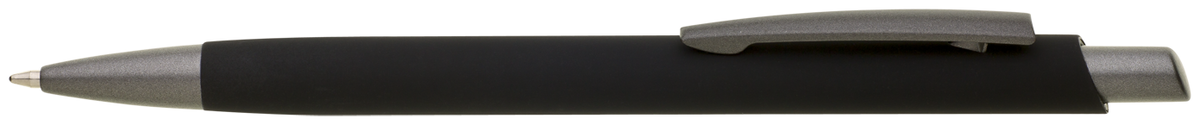 LIVOX SOFT RE – kovová propiska s pogumovaným soft povrchem z recyklovaného hliníku. Propiska má matné šedé doplňky. Náplň velkoobsahová, modře píšící.