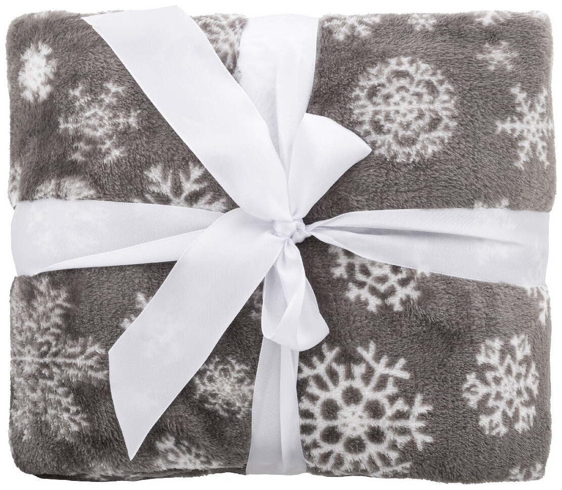 RPET flanelová fleecová vánoční deka, 260 g/m2. S potisknutelnou papírovou kartou a stuhou.