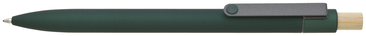 BRANIX SOFT RE designová kovová propiskas matným soft povrchem z recyklovaného hliníku. Propiska je doplněna tmavým kovovým klipem a bambusovým cvakátkem. Velkoobsahová náplň píše modře.