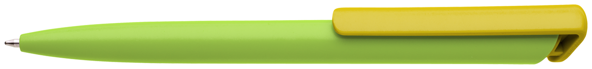Česká propiska BOIA v minimalistickém designu světle zeleného oválného těla s dynamickým tvarem žlutého masivního klipu. Tělo i klip nabízí velký prostor pro značení logem zákazníka. Materiál plast, náplň velkoobsahová, modře píšící. BOIA je vyráběna v České republice.