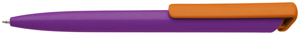 Česká propiska BOIA v minimalistickém designu fialého oválného těla s dynamickým tvarem oranžového masivního klipu. Tělo i klip nabízí velký prostor pro značení logem zákazníka. Materiál plast, náplň velkoobsahová, modře píšící. BOIA je vyráběna v České republice.