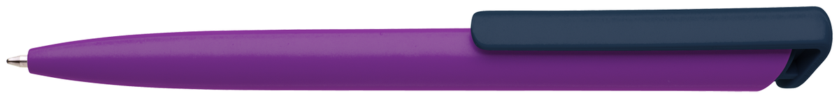 Česká propiska BOIA v minimalistickém designu fialého oválného těla s dynamickým tvaremtmavě modréh masivního klipu. Tělo i klip nabízí velký prostor pro značení logem zákazníka. Materiál plast, náplň velkoobsahová, modře píšící. BOIA je vyráběna v České republice.