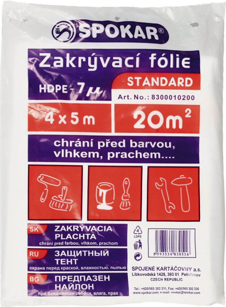 | 1743907 | Zakrývací fólie na malování Spokar Standard, 7 µ, 4 × 5 m | 47,47 Kč | 57,44 Kč | 1 bal | |||
