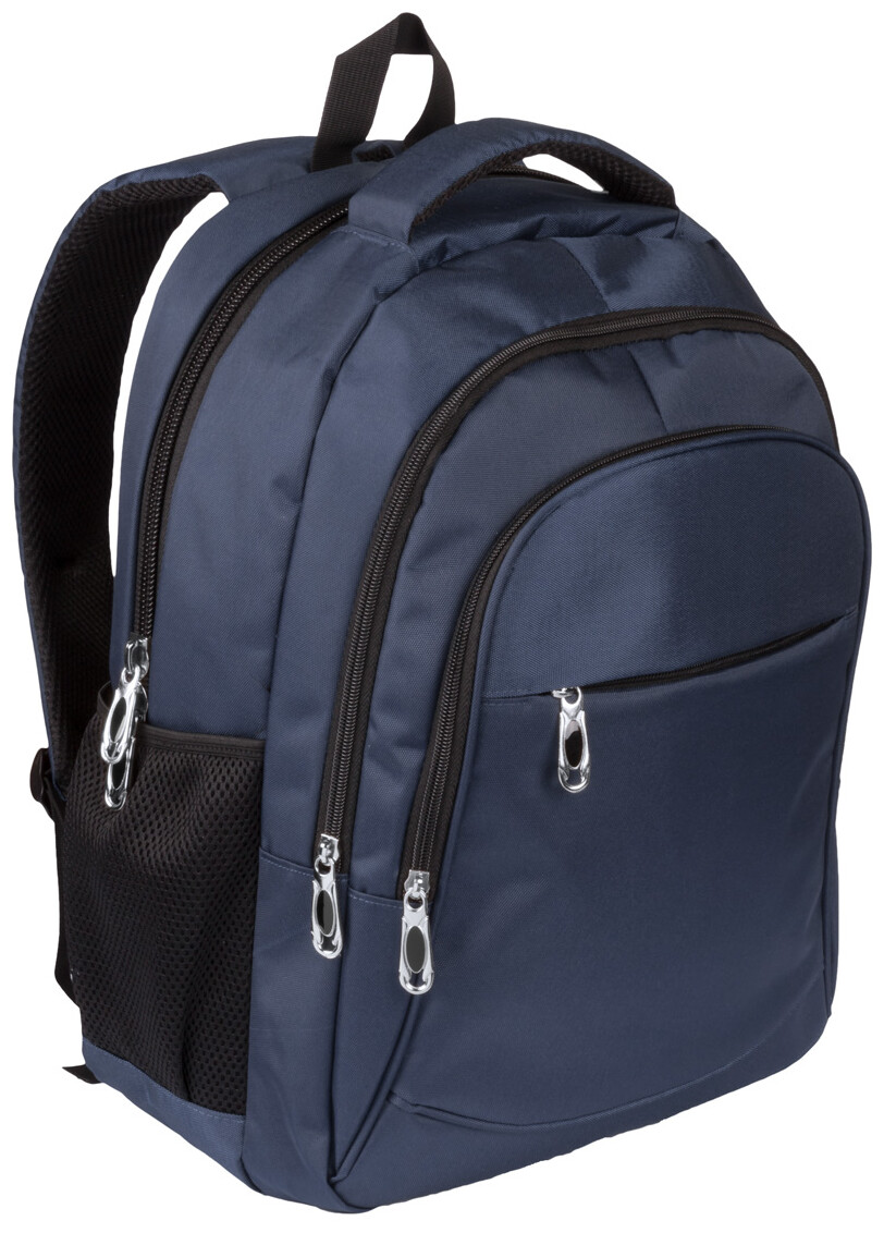 Batoh s mnoha přihrádkami na zip, vypolstrovanou kapsou na laptop (15"), zády a popruhy, 600D nylon.