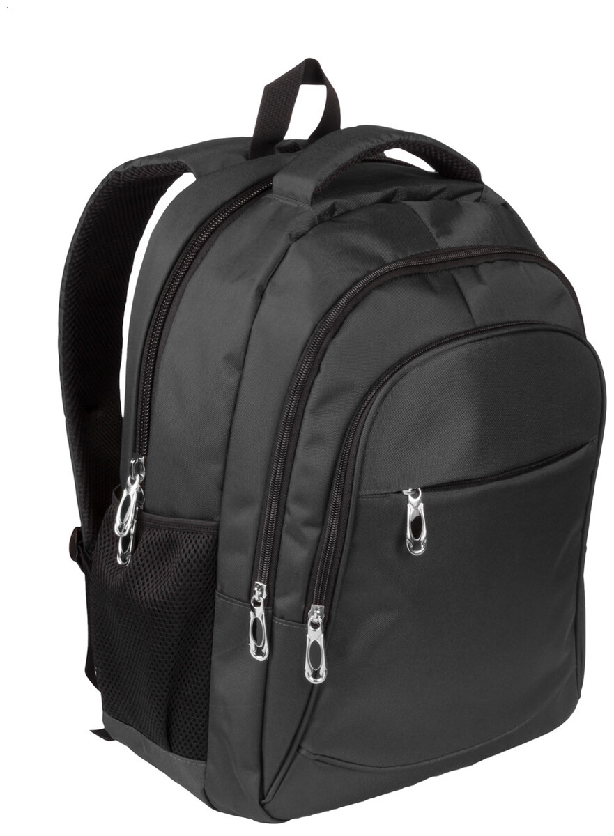 Batoh s mnoha přihrádkami na zip, vypolstrovanou kapsou na laptop (15"), zády a popruhy, 600D nylon.