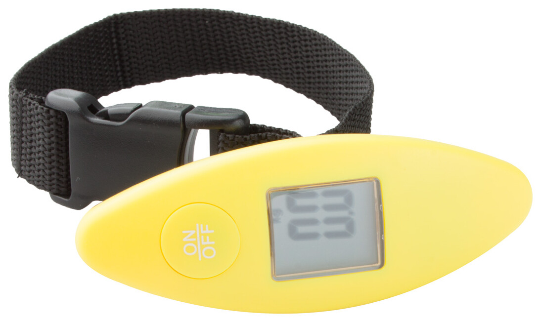 Digitální váha na zavazadla s knoflíkovou baterií. Max. váha: 40 kg.