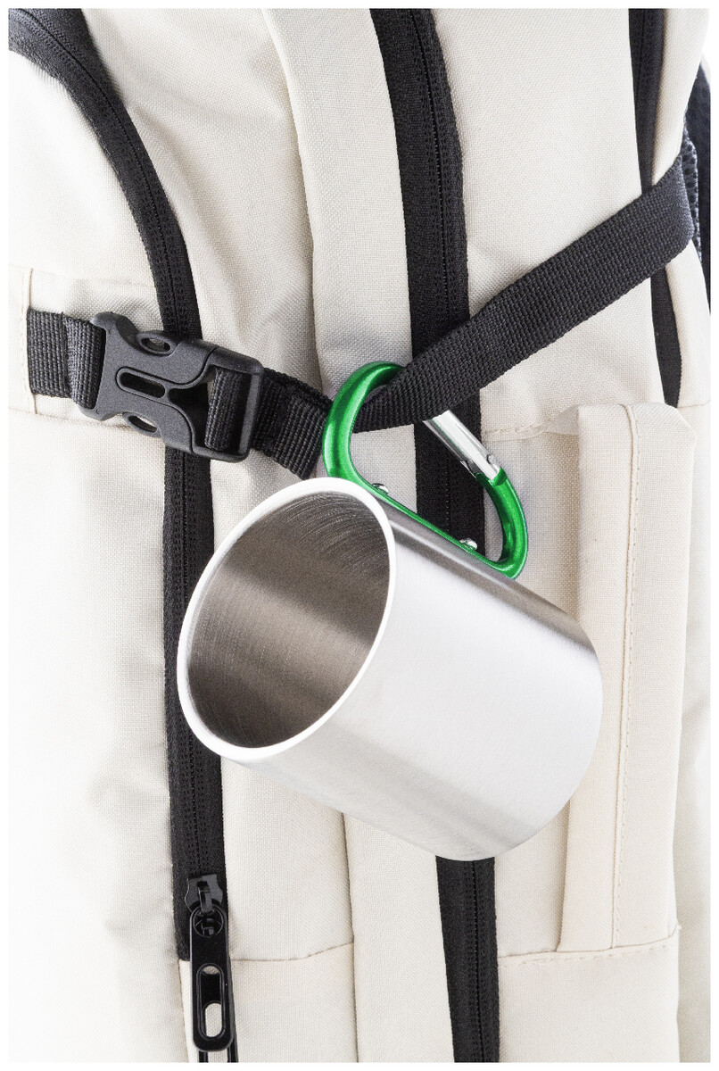 Nerezový hrnek s barevným karabinkovým uchem, 200 ml.
