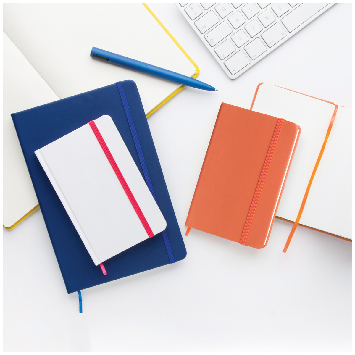 Poznámkový blok se 100 čistými listy, záložkou a gumičkou. Velikost A6.