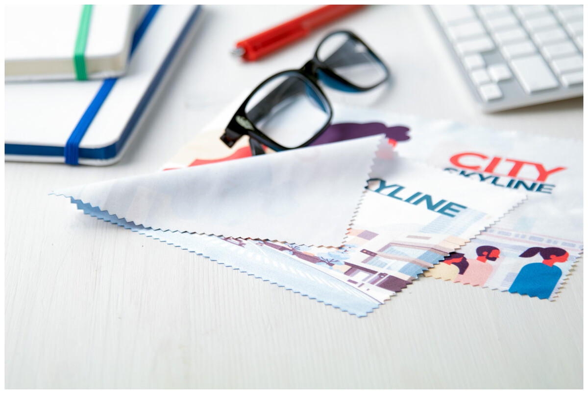 Čistící hadřík z mikrovlákna (180 g/m2) na brýle a obrazovky. Ideální pro sublimační tisk.