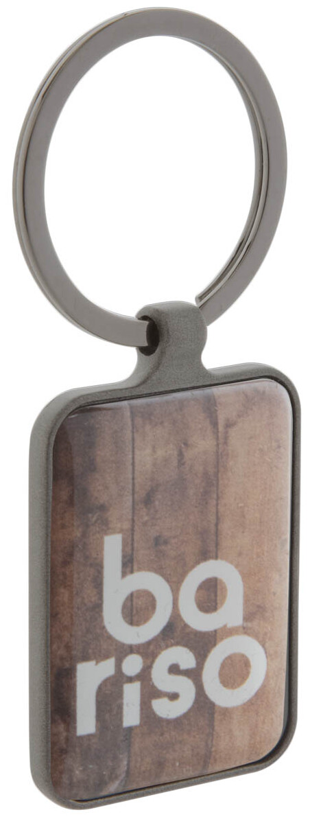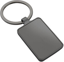 Obdélníkový přívěšek na klíče v barvě gun metal s oboustranným lesklým povrchem.