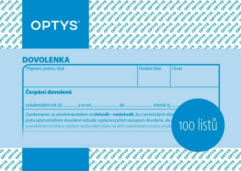 | 1709406 | DOVOLENKA OPTYS A6/100l | 31,68 Kč | 38,33 Kč | 1 ks | |||
