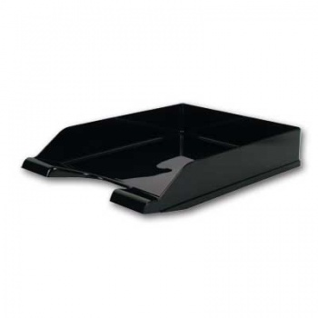 Pevný kancelářský odkladač pro organizaci dokumentů do formátu A4. Vyrobený z odolné kombinace polystyrenu a polypropylen - nárazu odolný, masivní. Snadné stohování na sebe nebo pomocí praktických zarážek kaskádově. Vnější rozměry: 254 x 60 x 346 mm, vnitřní rozměry: 244 x 43 x 325 mm. Barva: černá.