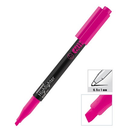 Zvýrazňovač se seříznutým hrotem 5 x 1 mm, kulaté tělo, vhodný na papír, faxový papír i kopie. V sadě jsou 4 ks zvýrazňovačů, žlutý. růžový, oranžový a zelený.