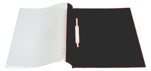 Rychlovazač A4 PVC, zadní strana z pevné lepenky potažená PVC fólií. Na přední straně průhledná kapsa A4 na zasunutí dokumentů. Balení 50 ks. Barva: černá.