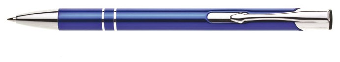 ORIN je velmi oblíbená hliníková reklamní tužka. Lesklé, tmavě modré tělo se dvěma stříbrnými proužky a chromovými doplňky.