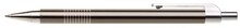 Kuličkové pero LAURIA je vyrobeno z hliníku. Má šedé tělo se stříbrnými doplňky jako jsou špička, klip a cvakátko. Úchopová část má 10 stříbrných proužků po celém obvodu tužky. Náplň- X20, modře píšící.