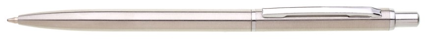 Tenká klasická propiska stainless steell se stiskacím mechanismem. Náplň velkoobsahová, modře píšící.