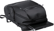 Voděodolný nylonový batoh s mnoha přihrádkami na zip, vypolstrovanou přihrádkou na laptop (15"), vypolstrovanými zády a popruhy. S vestavěným USB připojením pro power banky.