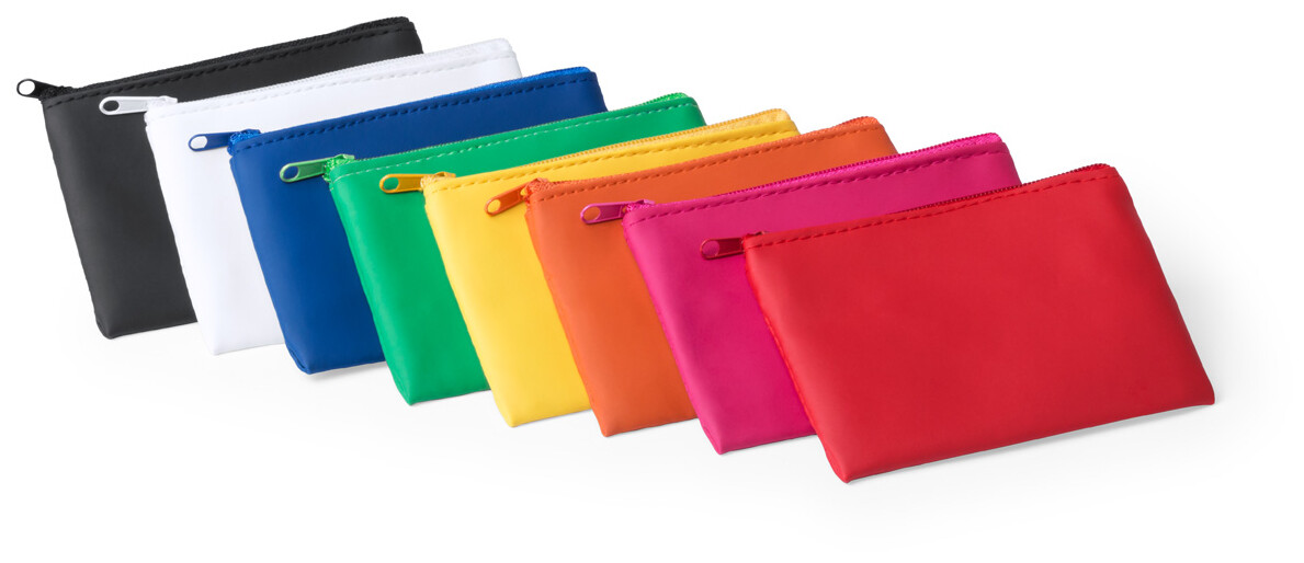 Peněženka na zip z PU kůže a přívěškem na klíče uvnitř.
