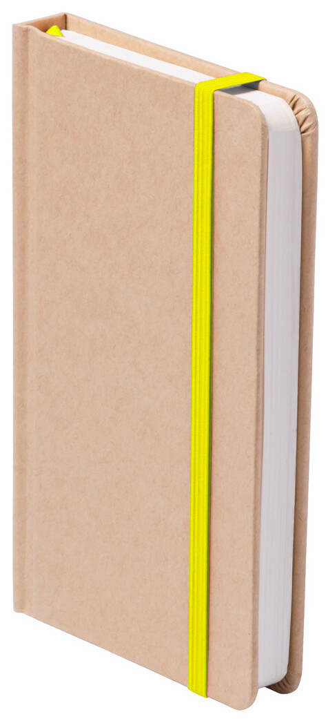 Blok s deskami potaženými recyklovaným kartonem se 100 čistými listy, barevnou záložkou a gumičkou.