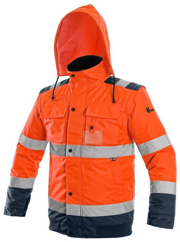 Výstražná zateplená bunda do pasu, 2v1, odolná proti vodě a větru.