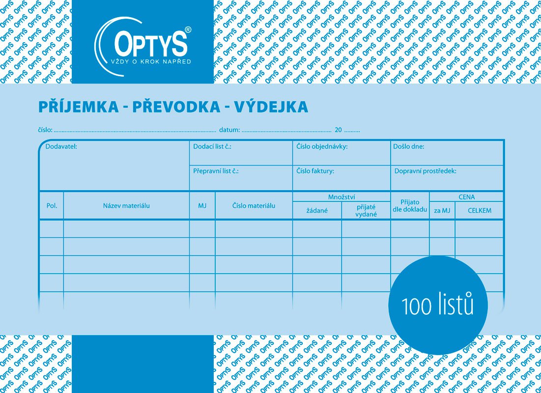 | OPT-1042 | PŘÍJEMKA PŘEVODKA VÝDEJKA A5 100 listů | 75,09 Kč | 90,86 Kč | 1 ks | |||