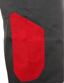 Pánské montérkové kraťasy, pas s poutky na opasek, přední klínové kapsy, boční kapsa s klopou, kapsa na skládací/svinovací metr, zadní jednoduchá kapsa na pravé straně.