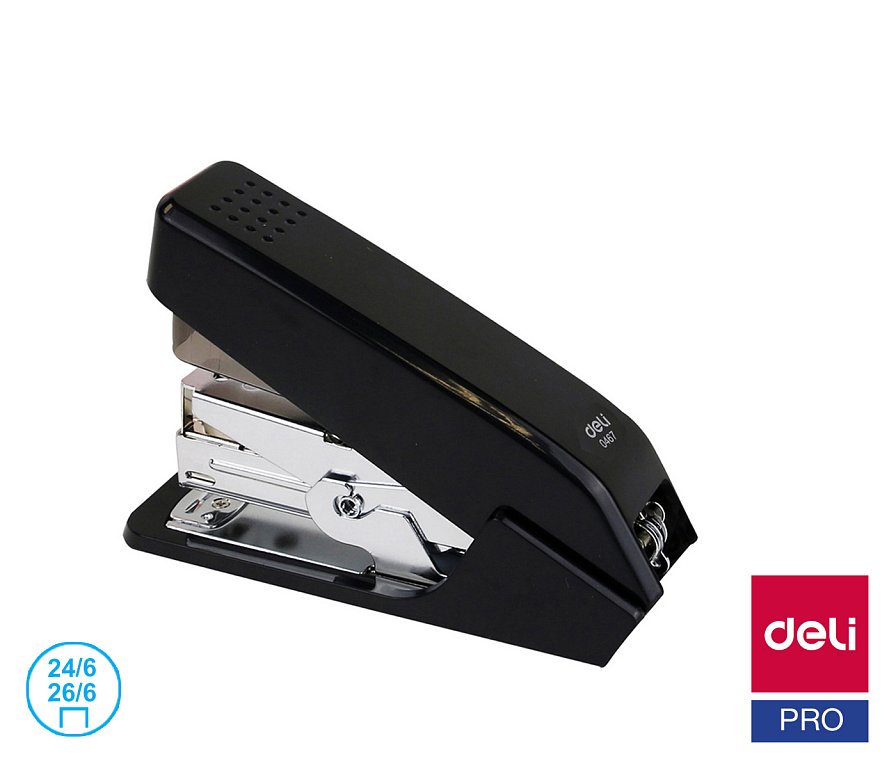 Vysoce kvalitní plastová sešívačka s kovovým ramenem. Hloubka vkládání papíru 45 mm, drátky 24/6, 26/6, kapacita 50 ks drátků, ukazatel množství drátků v sešívačce. Sešije až 25 listů. Sešívačka je vybavena funkcí „bez námahy“, kdy ušetří až 65% vaší energie.