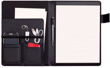 Černé designové portfolio (konferenční desky) s magnetickým zapínáním, včetně poznámkové knihy A4 (20 listů).