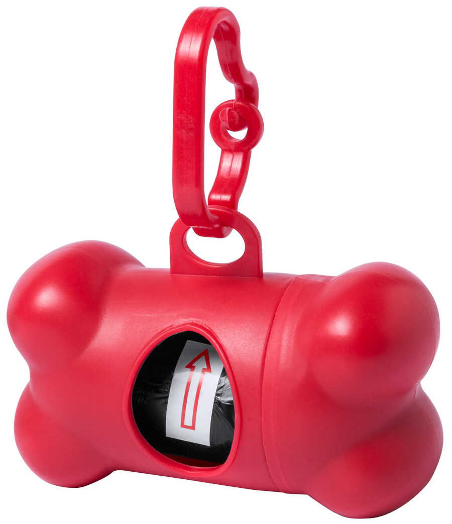 Plastový zásobník ve tvaru kosti s 15 pytlíky na psí exkrementy s karabinkou.