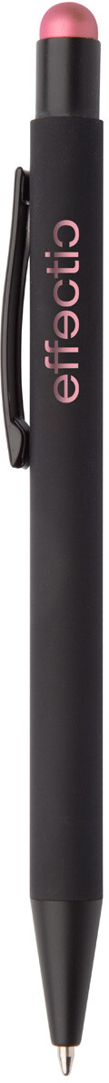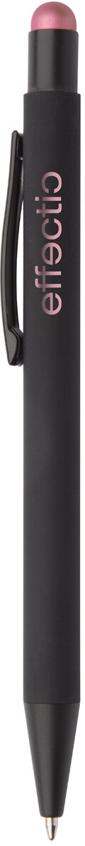 Hliníkové kuličkové a dotykové pero s pogumovanou úpravou a speciálním povrchem pro zrcadlový laser v barvě stylusu, s modrou náplní.