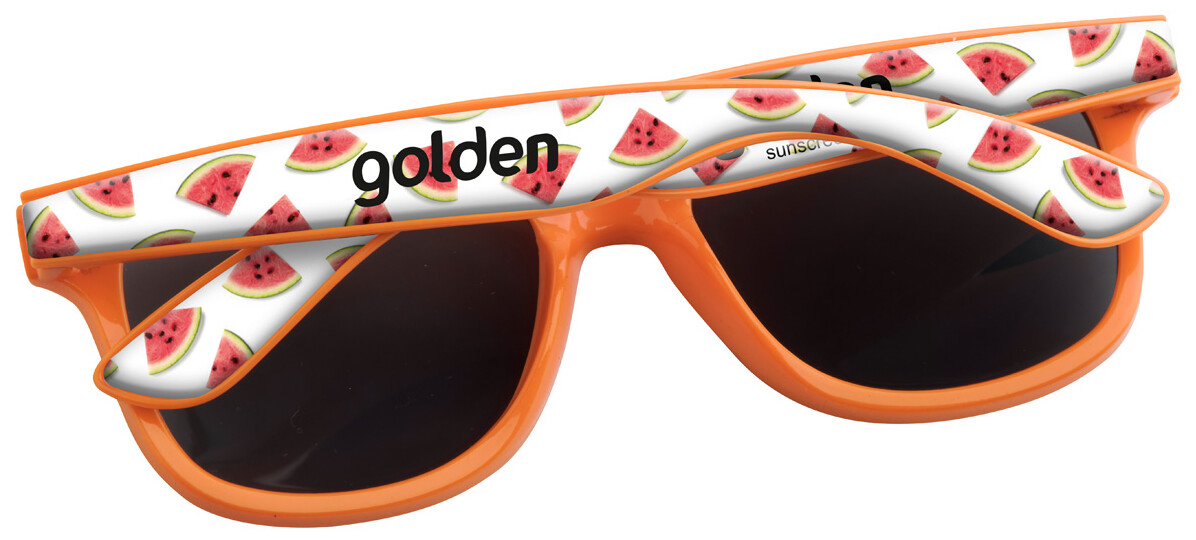 Plastové sluneční brýle se speciálními nožičkami pro epoxy potisk. S ochranou UV 400. Cena zahrnuje epoxy potisk na nožičkách, nezahrnuje tiskovou přípravu. Min. mn.: 100 ks.
