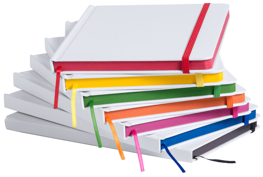 Blok se 100 čistými listy v papírových deskách a barevnou gumičkou, A5.
