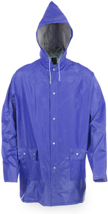 Pláštěnka s kapucí z odolného PVC s žáruvzdornou povrchovou úpravou. Se zapínáním na knoflíky a dvěma předními kapsami.