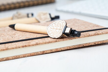 Recyklované papírové kuličkové pero s překližkovým klipem vyrobeným na zakázku a modrou náplní. Klip je vyroben na zakázku - maximální rozměr: 25×35 mm. Cena včetně gravírování loga na klip, nezahrnuje tiskovou přípravu. Min. mn.: 100 ks.