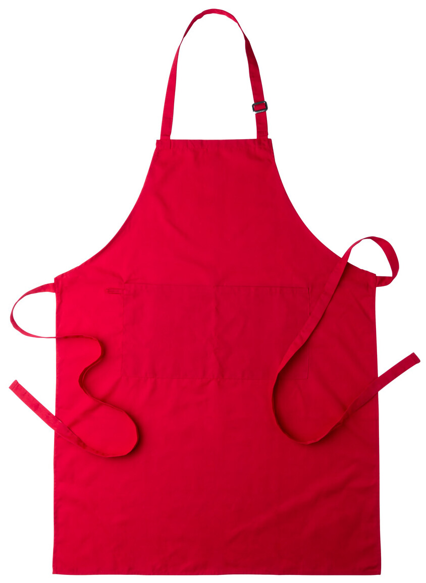 Barevná zástěra s předními kapsami. Materiál 80% polyester/20% bavlna.