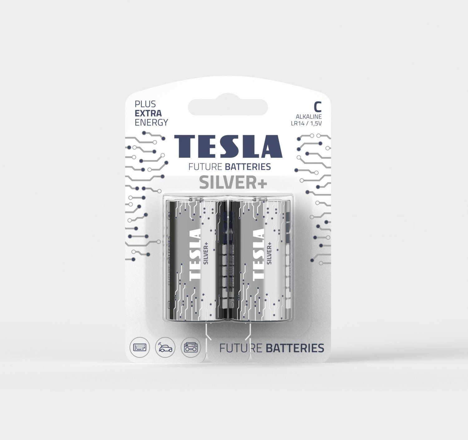 Řada baterií TESLA SILVER C+ zahrnuje alkalické baterie určené pro přístroje s dlouhodobým vysokým odběrem elektrické energie. Představuje ideální volbu pro elektronické hračky. Tuto řadu specifikuje dlouhotrvající výdrž baterie při stálém energetickém zatížení.