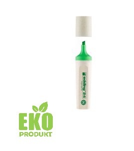 Zvýrazňovač Edding se seříznutým hrotem, šíře stopy 2 - 5 mm. Umělohmotné části vyrobeny minimálně ze 70 % z obnovitelné suroviny.