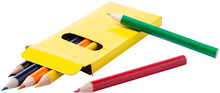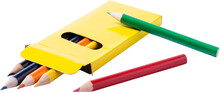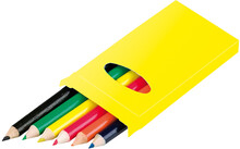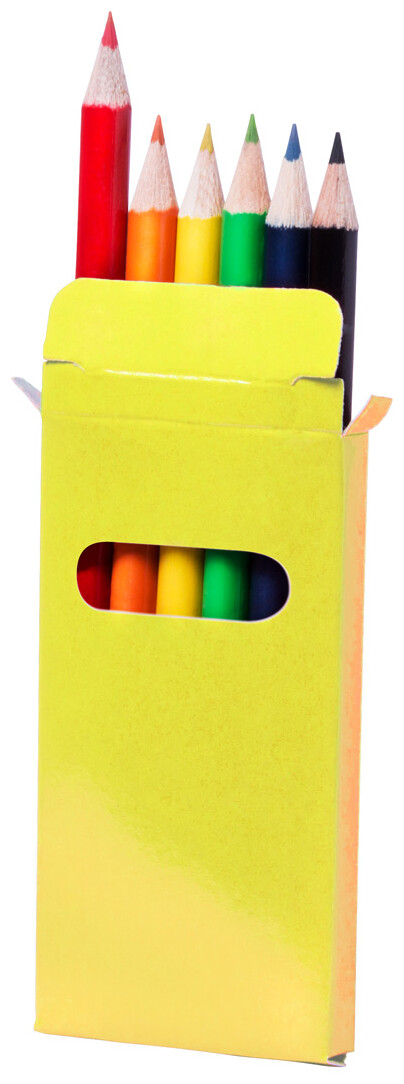 Dřevěné pastelky (6 ks) v barevné papírové krabičce.