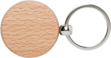 Přívěsek na klíče z přírodního bukového dřeva s kovovým kroužkem.