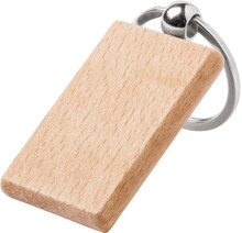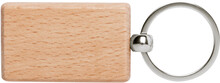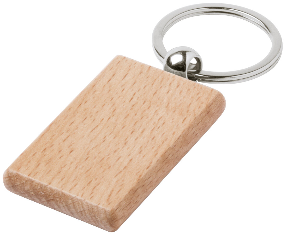 Přívěsek na klíče z přírodního bukového dřeva s kovovým kroužkem.