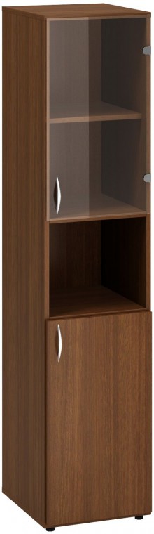 ALFA 500, skříň 2M/1M/2M, dveře/nika/sklo P, 400x470x1780 mm, ořech