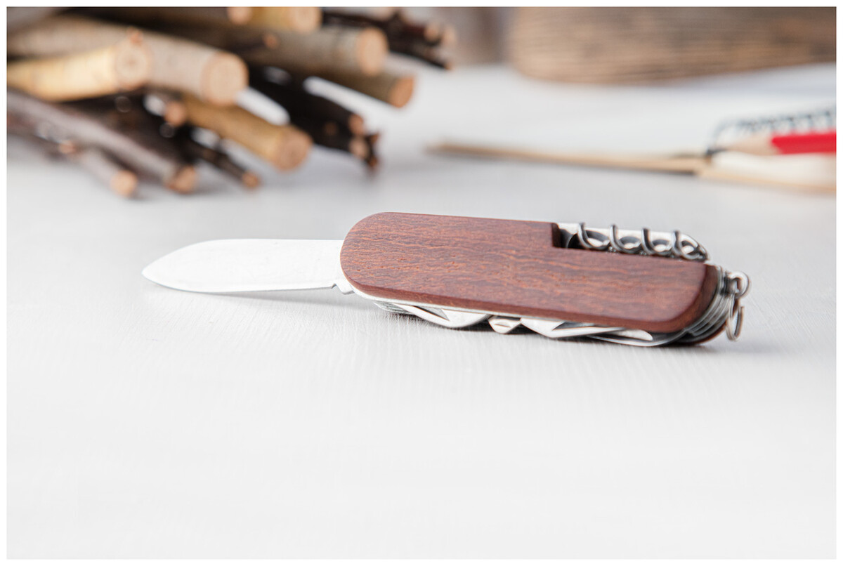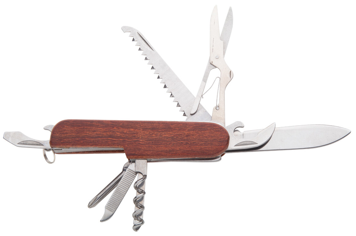 Kapesní nůž, nerez ocel/dřevo, 9 funkcí.