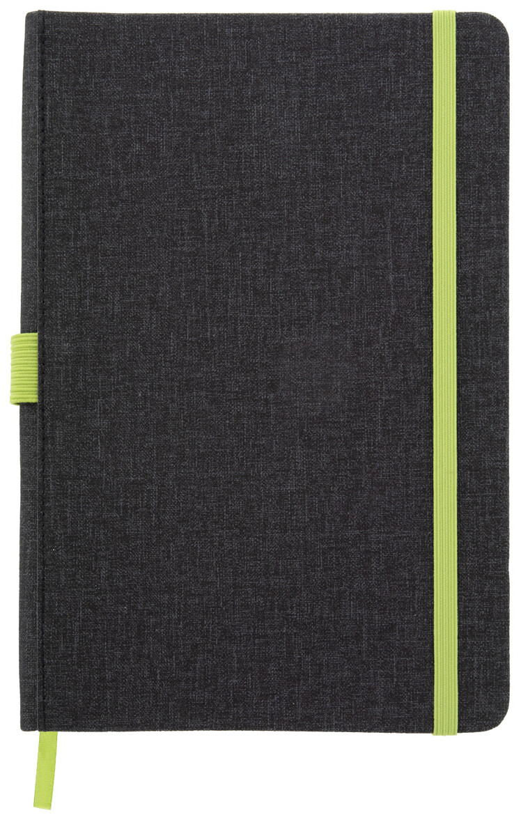 Texturovaný blok A5, potažený PU kůží se záložkou, gumičkou a držákem pera. 96 linkovaných listů.