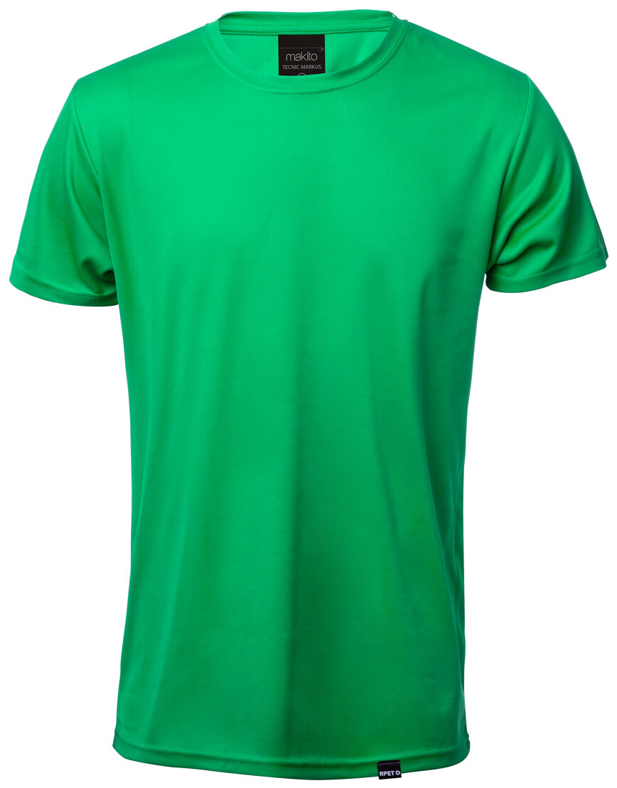 Sportovní prodyšné tričko ze 100% RPET polyesteru, 135 g/m2, s etiketou s označením RPET.