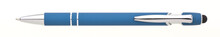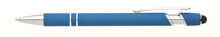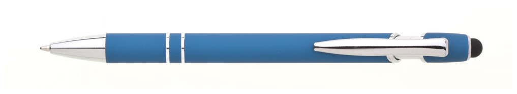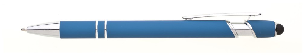 Propiska s touch koncem, měkkým pogumovaným soft povrchem v tyrkysové barvě a stříbrnými doplňky včetně dvou ozdobných kroužků. (NATIO)