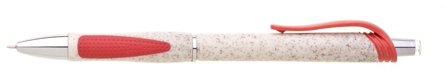 Propiska s plastem s podílem pšeničné slámy v přírodní barvy s červeným klipem a barevným gumovým úchopem. Náplň X20, hrot 0,5mm.