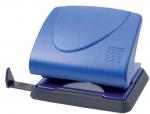 Děrovačka s příložníkem, vrchní část z umělé hmoty, spodní část kovová. Kapacita 25 listů, rozteč 80 mm, průměr otvoru 5,5 mm. Barevné provedení: modré.