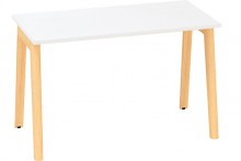 ALFA ROOT je kancelářský stůl postavený na masivním jasanovém podnoží. Kovové spojovací prvky jsou v bílé barvě RAL9010.