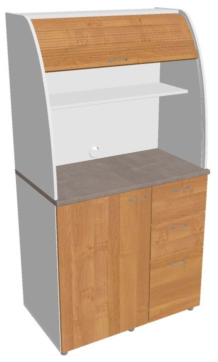 Dvě police ve vrchní části kuchyňky poskytují dostatečnou kapacitu pro vaše skleničky, hrnky či talíře. Na pracovní desku můžete umístit např. kávovar a kabelovou průchodkou v zadní části vyvedete přívodní kabel z prostoru kuchyňky.